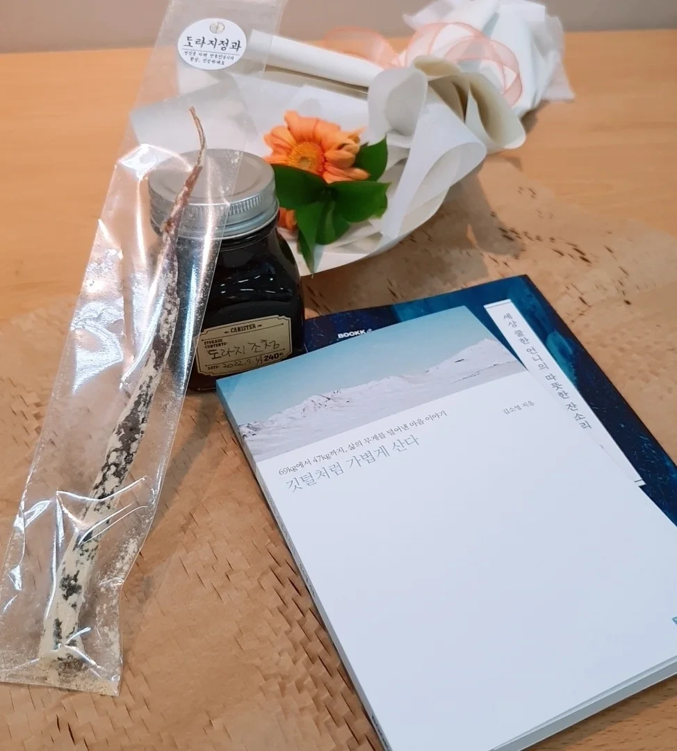 솜씨 좋다며 칭찬해 주시고 이런저런 얘기를 하다가, 다이어트와 운동에 대한 고민을 말씀하시길래 제 책을 선물해 드렸네요.