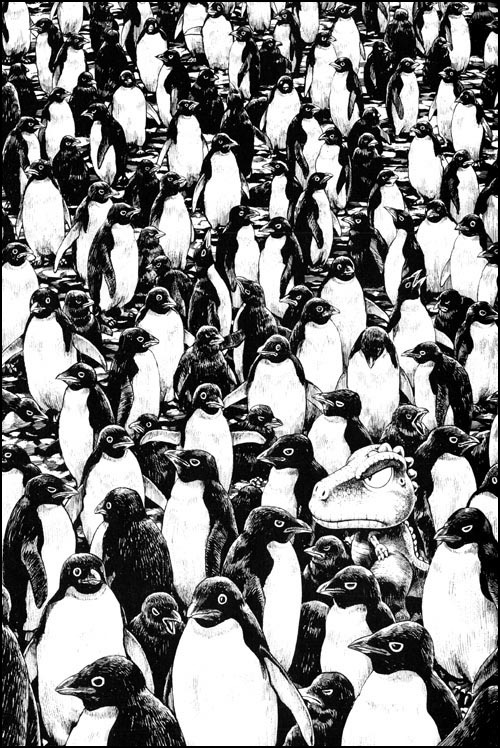 격주로 나오는 만화잡지였는데 무심히 뒤적이다 펭귄 떼가 양쪽 면을 가득 메운 그림에 눈길이 꽂혔다.