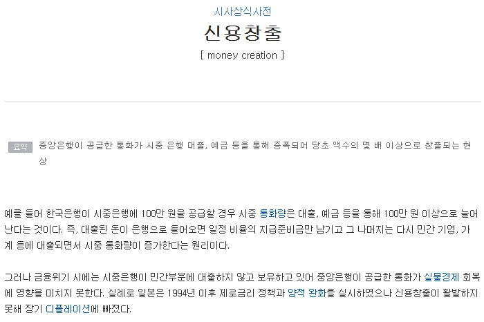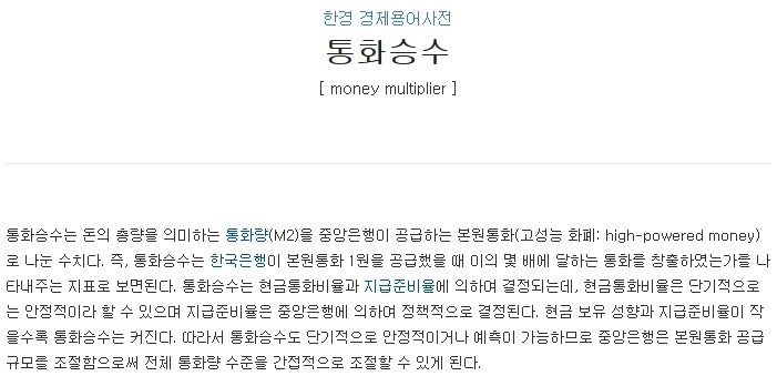 신용창출은 경기가 좋아 통화량(돈의 흐름)이 풍부할 때 급속도로 이루어지고, 이는 '통화승수'로 표현된다.