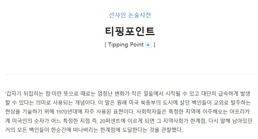 나아가 ‘티핑포인트 tipping point’의 개념을 적용해보자.
