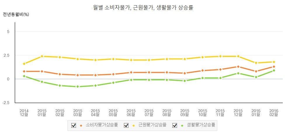 70년대 두 자릿수를 상회하던 소비자물가지수는 현재 2% 수준이다.