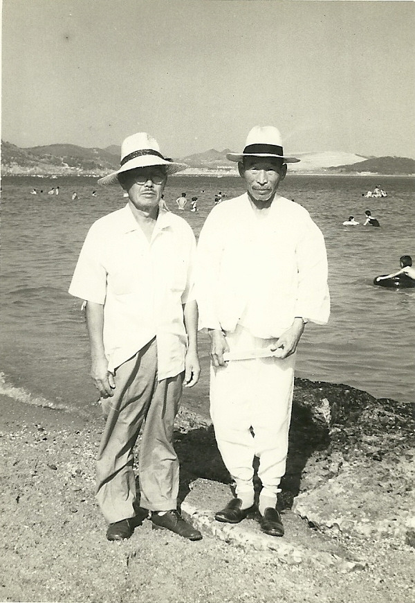 외할아버지(부채 드신 분)와 할아버지, 외할아버지는 ‘전남 고흥군 녹동읍 신정부락’에서 오셨고 할아버지는 ‘함남 신흥군 하원천면 흥덕리’ 출신이시다.