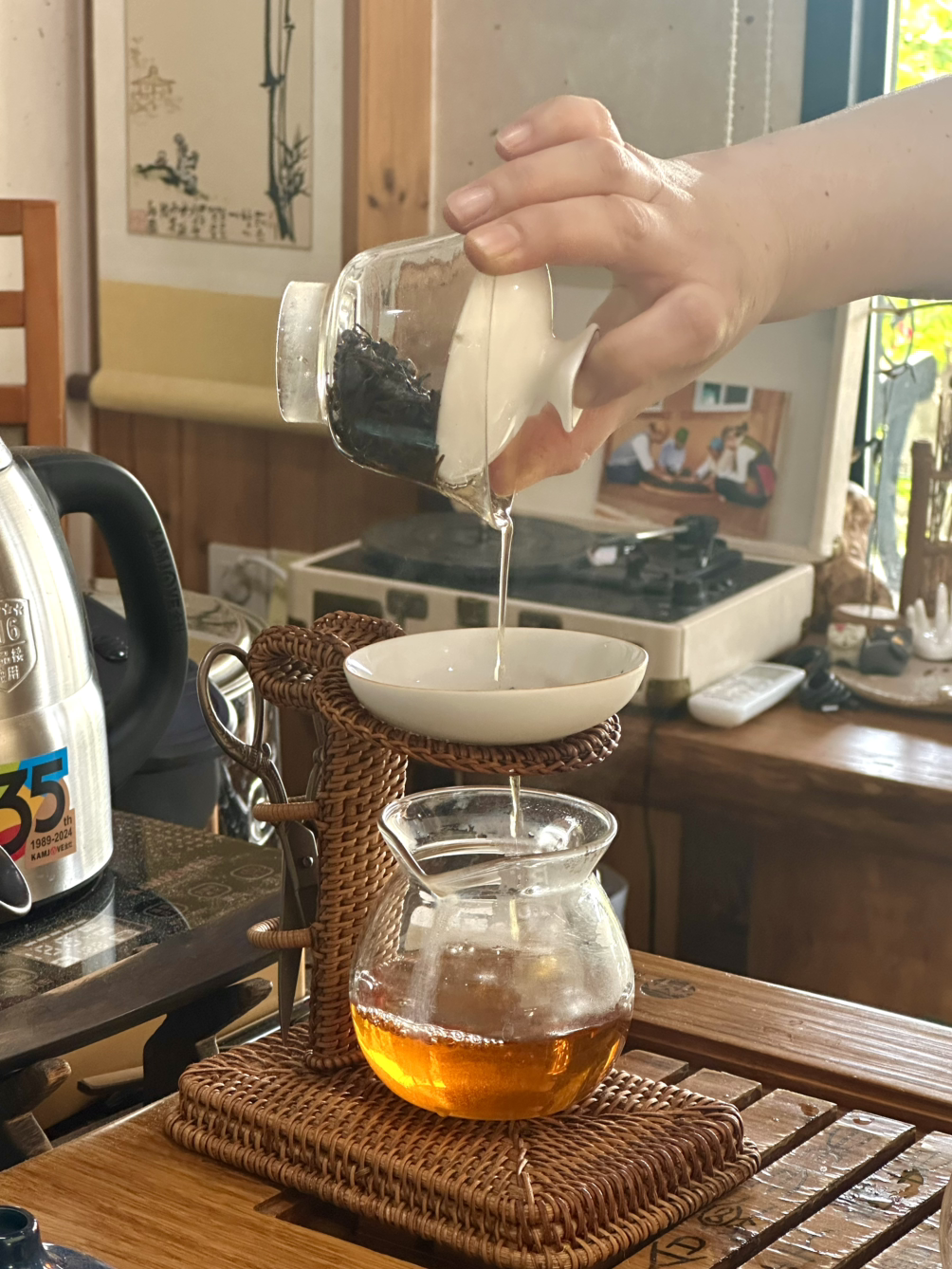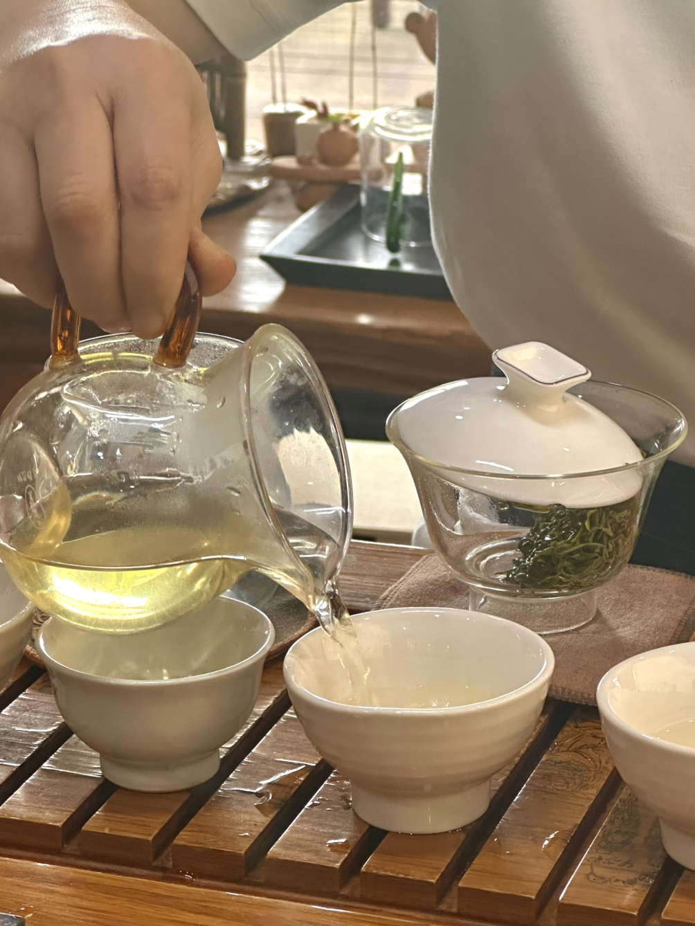 " 감사합니다. 이번엔 다른 차 우려 드릴게요. "