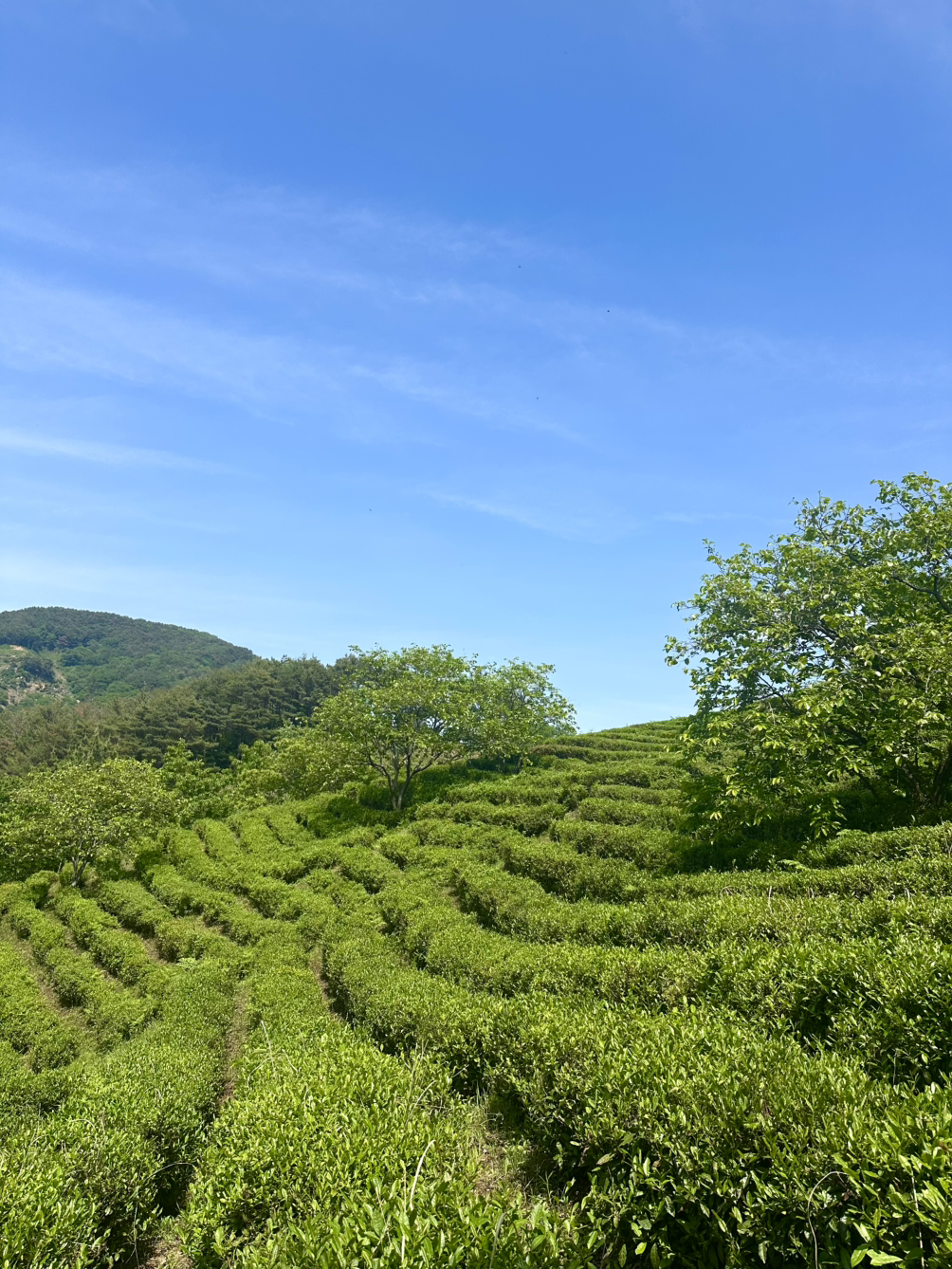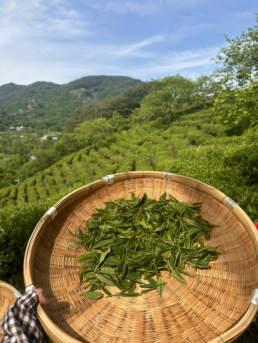 전우들과(?) 뿔뿔이 흩어져 각자의 자리에서 어린잎이 보이는 찻잎을 하나하나 찾기 시작했다. 오로지 찻잎에 집중하다 보니 잡념은 사라지고 어째 반복적인 노동의 행위에 점점 더 길들여졌다. 그러다 잠시 고개를 들어 차밭 풍경을 감상하고 있노라면 세상을 다 가진 것처럼 행복의 기운이 스멀스멀 올라온다.