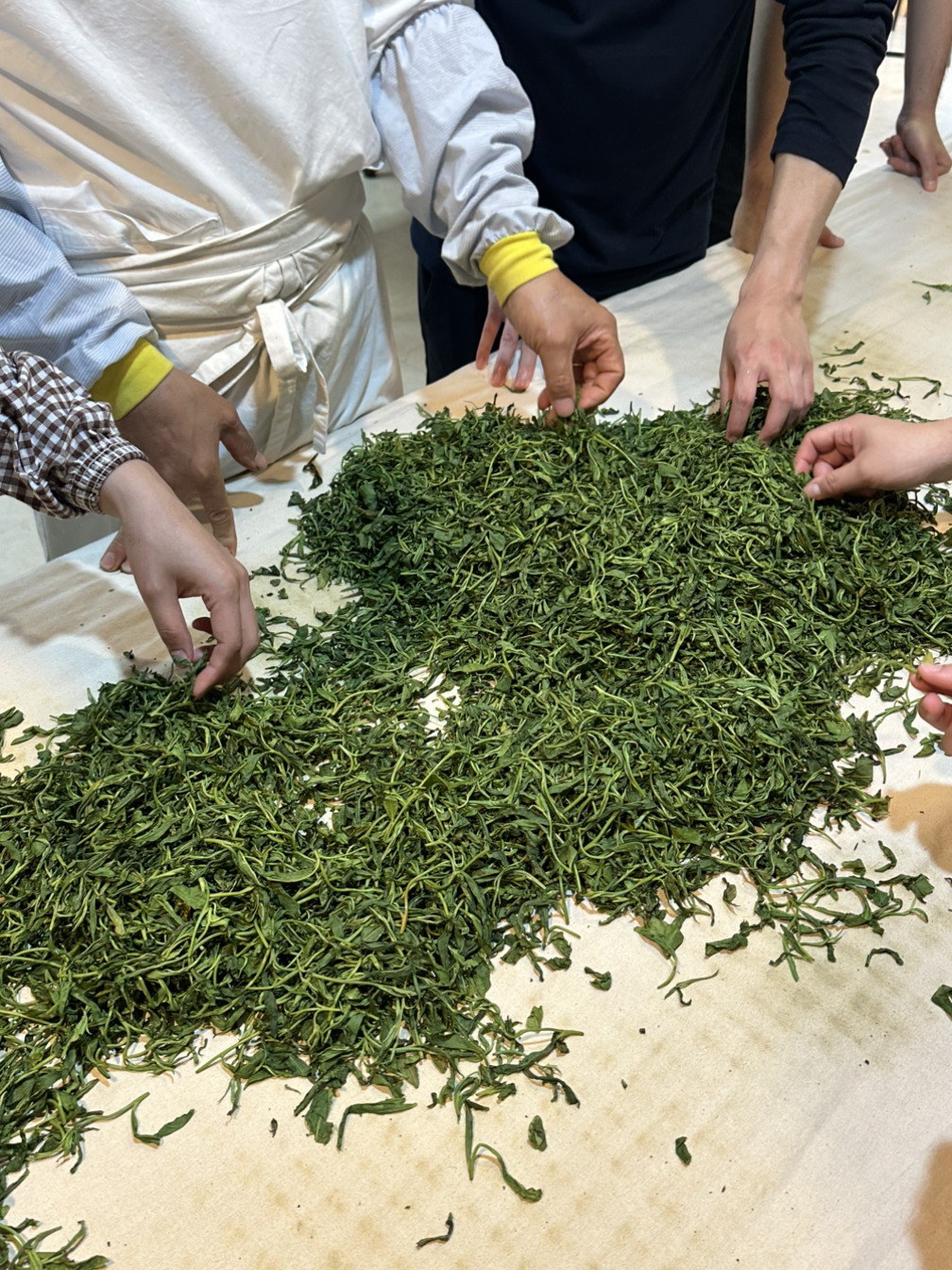 이날 우리는 약 1시간 동안 1kg를 목표로 찻잎을 따기로 한다. 고로 10명이서 10g 정도는 수확해야 한 사람당 겨우 2~3번 우려먹을 수 있다는 것. 자자, 전우들이여 힘내보자고.