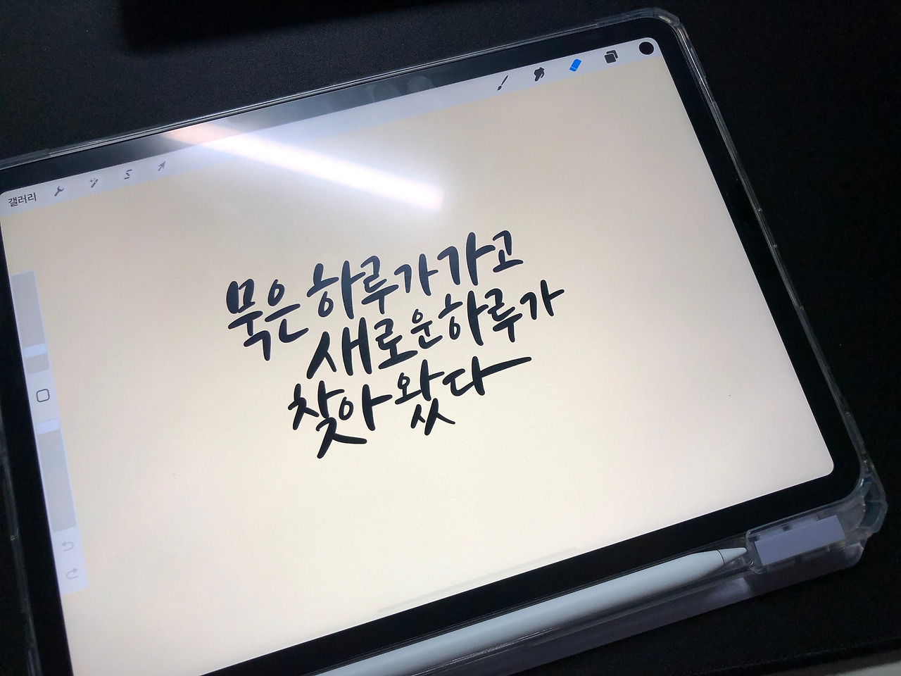 올해 1-2월에 온라인으로 캘리그라피 개인 수업을 들었었다. 갑자기 아이패드 병에 걸린 것도 캘리그라피 때문이었다. 작년에 딥펜 캘리그라피를 잠깐 배운 적이 있었는데, 왠지 아이패드로 하면 언제 어디서든 맘껏 할 수 있을 것 같아서. 그래도 수업을 들으면서는 열심히 했었지. 수업이 끝나고는 현생에 치인다는 핑계로 손을 놓고 살았다.