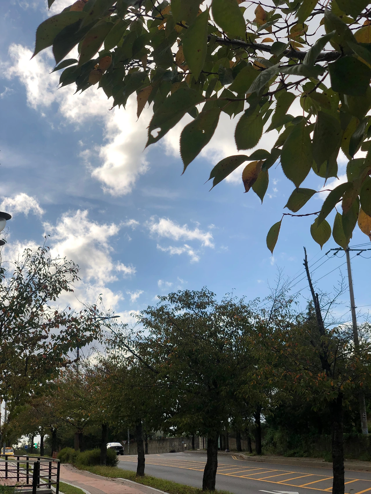J의 집이자 이제 곧 우리의 집이 될 곳으로 들어가는 길. 오늘도 하늘이 참 푸르다. 문득 나무를 보니 군데군데 노랗고 붉은색이 보인다. 나는 계절 중 가을을 가장 좋아한다. 올해도 한여름부터 단풍놀이 갈 날을 기다리고 있었다. 당연히 주말에 갈 생각이었는데... 평일 혼자 여행도 생각해 봐야겠다.