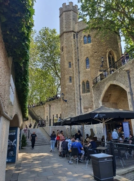 사실 더 큰 문제는 런던 타워 안이었다. 중세에 지어진 건물답게 바닥 돌 틈이 광장에 돌들보다 더 컸다. 캐리어 바퀴가 잘 끌리지 않았다. 둘째는 2미터마다 멈춰서 쉬고 있었다. 첫째는 어떻게든 달래서 틈이 좀 적은 인도 쪽으로 캐리어를 끌어보라고 권했다. 런던 타워는 화이트 타워 앞에서 사진을 찍고 거기 있는 까마귀도 봐야 해. 하지만 화이트 타워로 가는 길은 경사가 있었고 캐리어를 끌고 겨우 화이트 타워 앞에 도착한 우리는 지쳐버렸다. 그리 멀지 않은 길이었는데 이 얼기설기한 돌바닥은 연신 캐리어 바퀴가 끼여서 1미터를 나가는 게 쉽지 않았다. 게다가 날은 생각보다 더웠서 우리는 맞지 않는 옷차림을 하고 있었다. 원래는 왕실의 보물관을 볼 계획이였으나 올라가는 계단을 보니 도저히 엄두가 나지 않았다. 화이트타워 앞에 어떻게든 아이들을 세웠다. 사진 한 장 찍고 일단 후퇴. 더워하는 아이들에게 바로 옆에 보이는 기념품 샵에 들어가라고 했다. 거긴 에어컨이 나올 거야. 아이들을 넣고 캐리어 세 개와 밖에 서 있었다. 둘은 한결 나아진 얼굴로 다 둘러봤다며 5분도 안 돼서 나왔다.