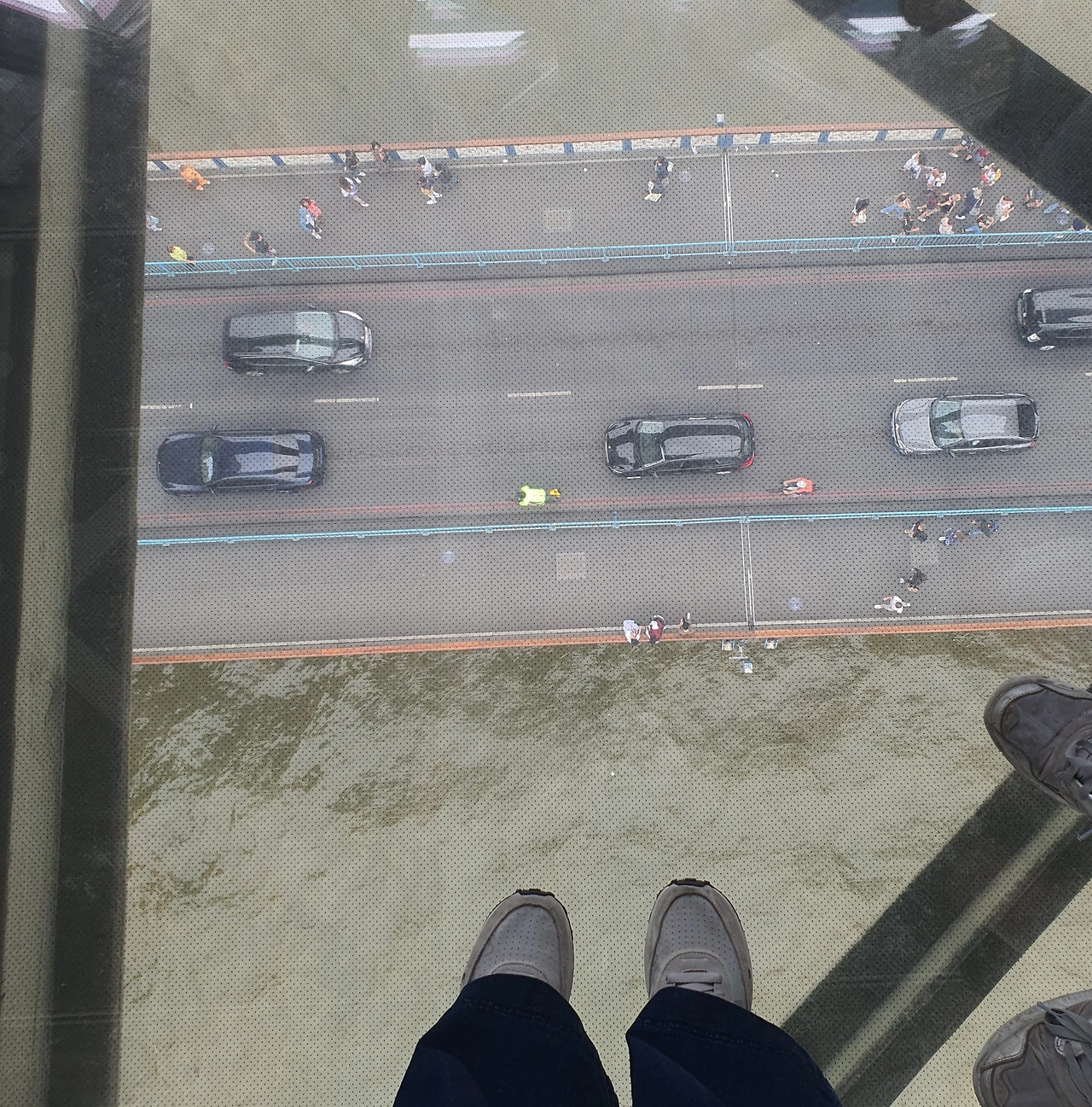 일찍 서두른 탓에 점심시간 전에 일정이 끝났다. 아무래도 근처에서 점심을 먹기엔 문을 연 식당이 많지 않다. 다음 목적지인 타워브리지로 가자. 타워 브리지에 도착하자 빗방울이 간간히 떨어지기 시작했다. 타워브리지는 다리를 걸어가다 중간쯤에 입구가 있었다. 천천히 다리 위를 걸으며 점점 커지는 타워 브리지에 다가갔다. 생각보다 줄 서있는 사람이 많았다. 브리지 내부는 엘리베이터를 타고 이동해서 윗층에 도달한다. 밖에서 볼 때 양쪽 탑 부분에 엘리베이터가 위치해 있는 거겠지? 내부로 들어선 이후에 다시 한번 좁은 계단을 지나 두 탑을 이어주는 기다란 통로에 들어섰다. 내부를 구경하는 사람들로 북적거렸다. 통로의 중간즈음에 바닥을 유리로 해 둔 곳에서 사람들이 너도 나도 기념사진을 찍고 있다. 잠시 아찔했지만 우리도 얼른 유리 위에 서서 사진을 찍었다. 그리고 타워브리지를 예전엔 어떤 방식으로 움직였는지에 동력 기계를 재현해 놓은 전시물도 구경했다. 개인적으론 아이들이 관람하면서 중간중간 퀴즈도 풀고 미션 도장도 찍을 수 있는 부분이 좋았다. 덕분에 아이들이 좀 더 즐거워하면서 관람하지 않았나 싶다. 큰 기대 없이 갔는데 아이들도 엄마도 만족스런 타워브리지였다.