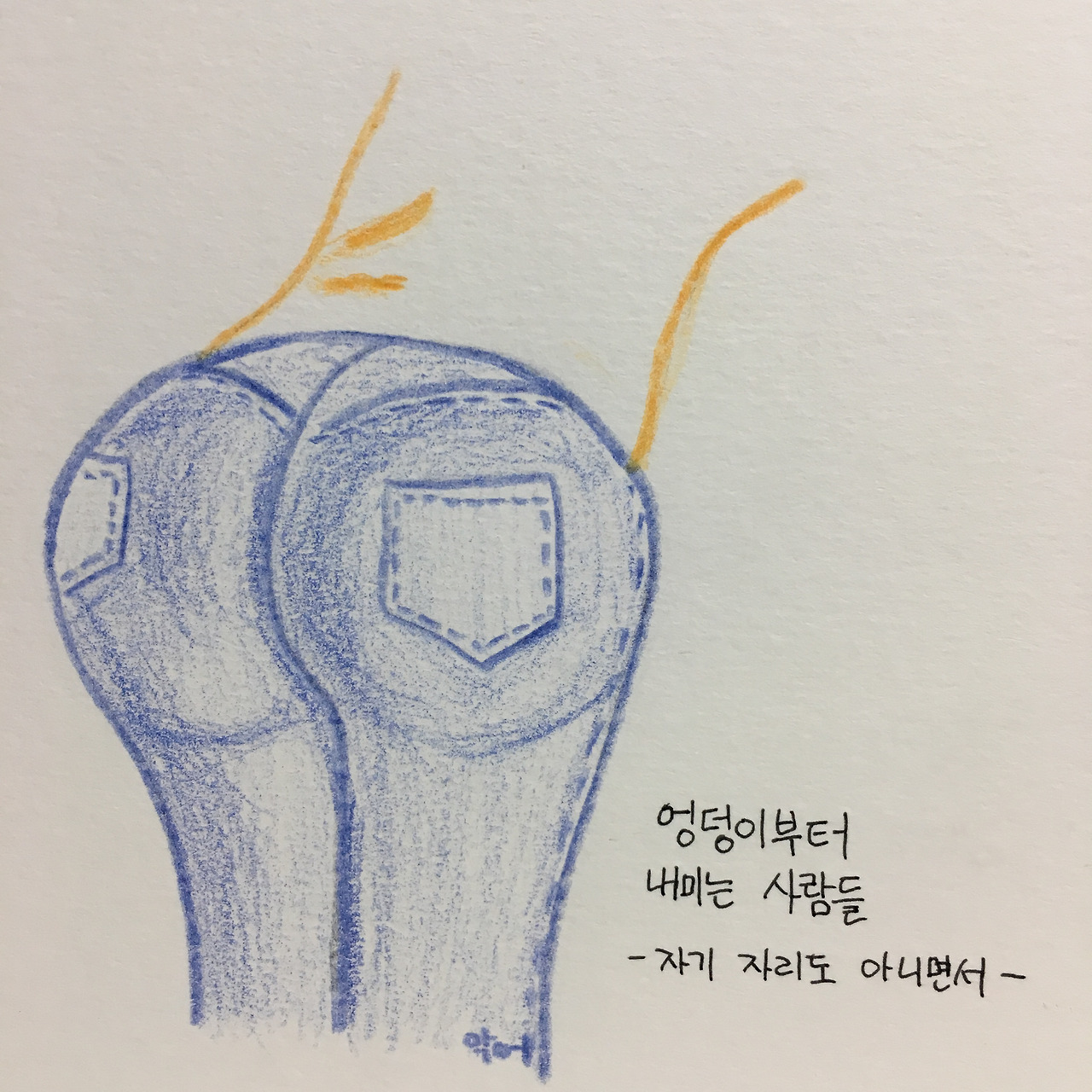 살다 보면 참, 엉덩이부터 내밀고픈 순간들을 많이 마주하게 된다. 학생이라는 꼬리표를 떼고 사회에서 내 힘으로 버티고 또 살아가게 되면서부터 지옥철의 빈자리 같은 유혹들이 나를 흔들어 댄다. 조금은 편히 가고 싶어서, 남 잘 되는 꼴은 배 아프니까, 일말의 손해라도 보고 싶지 않아서. 처음부터 내 것이 아닌데 내 것인 양 착각하고 집착하고 또 집착하는 일들. 부질없는 욕심으로 끝나버릴 일들. 그런 일들은 나중에라도 깨닫고 나면 수치심으로 몸 둘 바를 모르게 된다. 마치 남의 얼굴을 내 엉덩이로 찍어내는 것처럼.