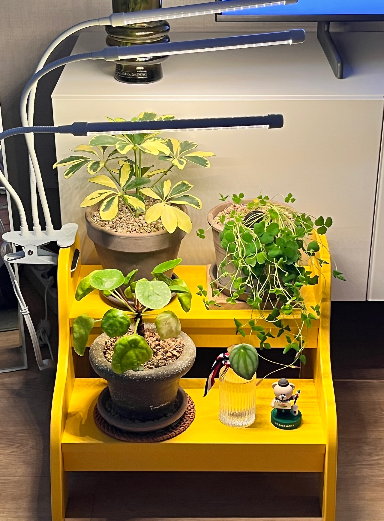 작년쯤, 집 근처 산책로를 걷다가 어느 화원을 발견했었다. 다른 집과 다르게 아기자기하면서 트렌디한 그곳에 마음을 뺏겼다. 집이 작아 화분은 놓지 않겠다고 생각한 것도 잠시 근 일 년간 3개의 식물을 분양해 왔다. 그리고 귀여운 이름도 지어주고 식물등도 달아주며 애지중지 키우고 있다. 상한 걸 잘라주거나 분무기로 물을 줄 때면 정말로 ‘힐링’을 하고 있다는 느낌을 받는다.