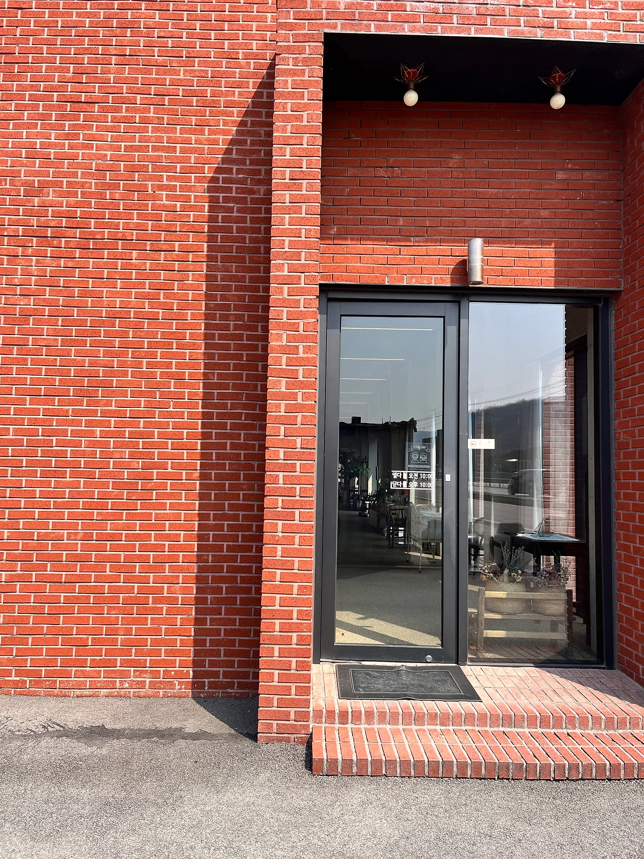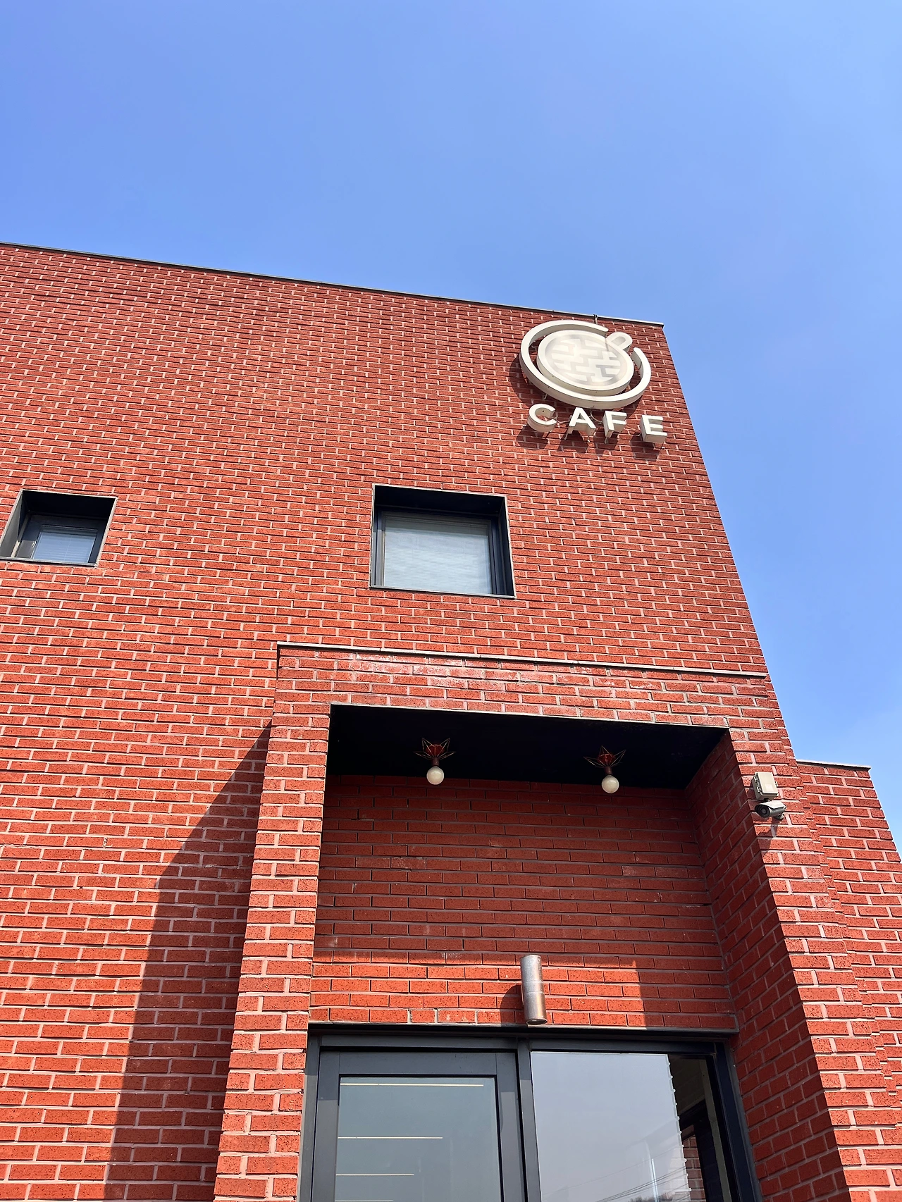 빨간 벽돌이 눈에 띄는 예쁜 카페예요.