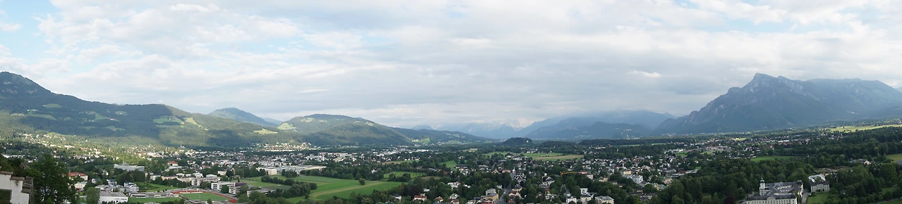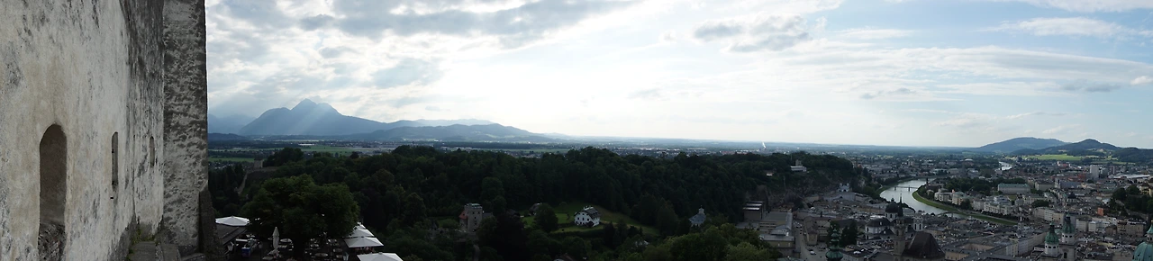 저 멀리 잘츠부르크의 랜드마크 호헨잘츠부르크 성이 보였다.