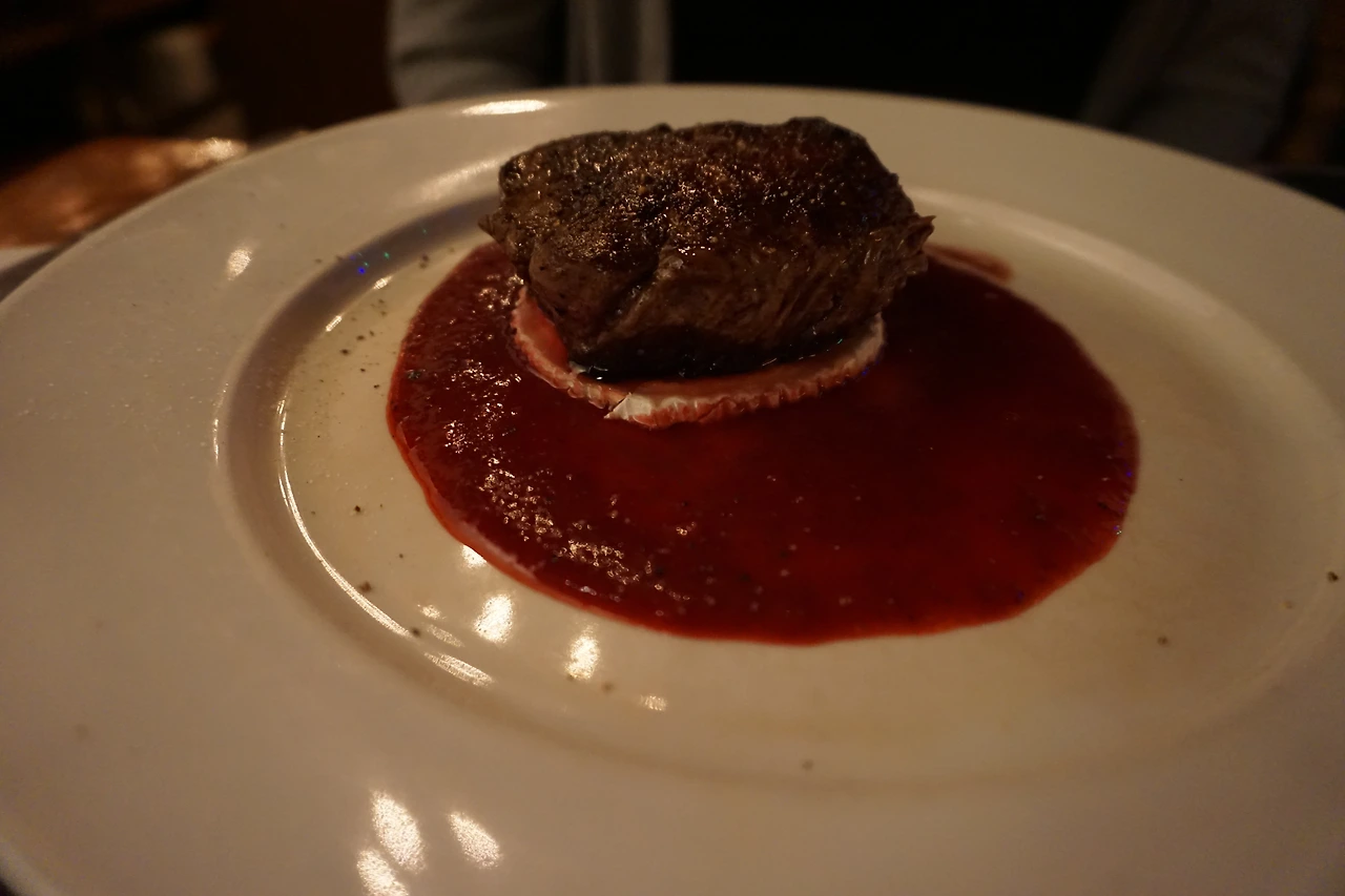 레스토랑에서도 추천하고 제일 많이 먹는 메인 요리였는데 개인적으로는 소고기에 딸기소스가 좀 따로 노는 느낌은 있었다. 참고로 메인 요리가 9시 5분, 그러니까 주문 후 약 45분 있다가 먹을 수 있었다.