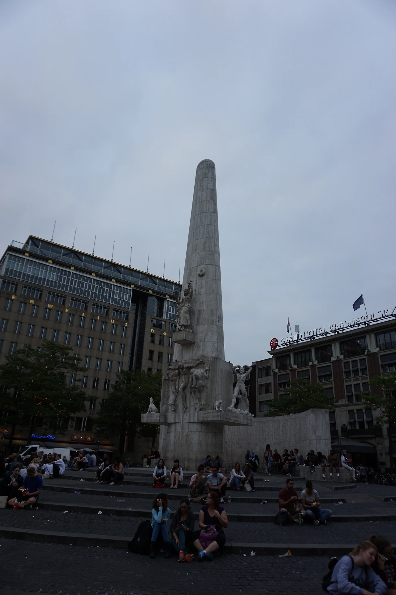 건너편에 있는 암스테르담 국립기념비, 2차 세계대전 전몰자 위령탑이라고 한다.