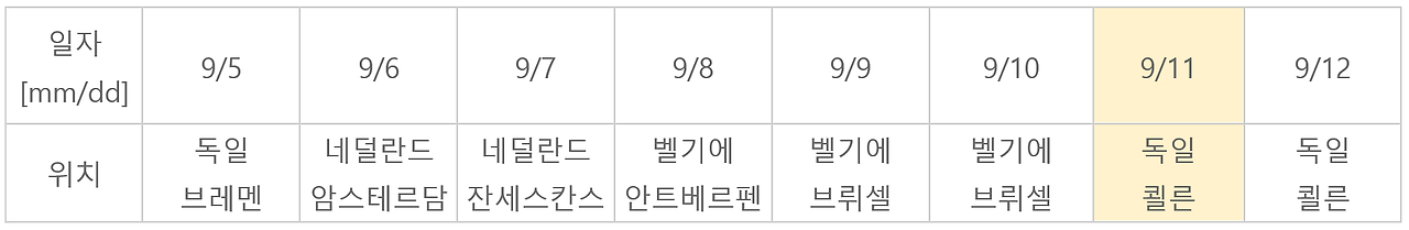 보통 다른 도시로 이동할 때는 점심쯤 이동을 했기 때문에 첫날의 일정이 짧을 수밖에 없었지만 쾰른은 새벽 6시 30분 기차를 타고 이동하게 되었다.