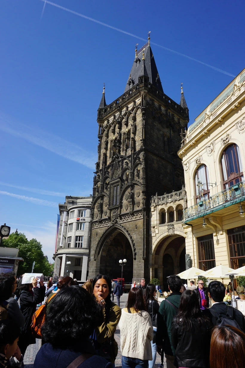 화약탑 - 1200년도에 만들어지고, 1475 고딕 양식으로 변경되었다고 한다. 프라하 곳곳에 13개를 만들었고 3개가 남았다고 한다. 사대문 같은 곳. 구시가지, 신시가지 경계. 1700년도부터 화약탑. 화약가루 저장창고. 지금은 전망대