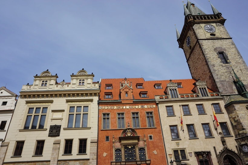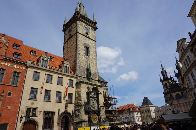 천문시계 - 1410년. 구시청(1338-) 하얀색까지, 고딕, 바로크, 신고전주의 양식으로 지어졌고, 하나의 건물을 다른 양식들로 확장시킨 건물이다. 엄청 특이했다.