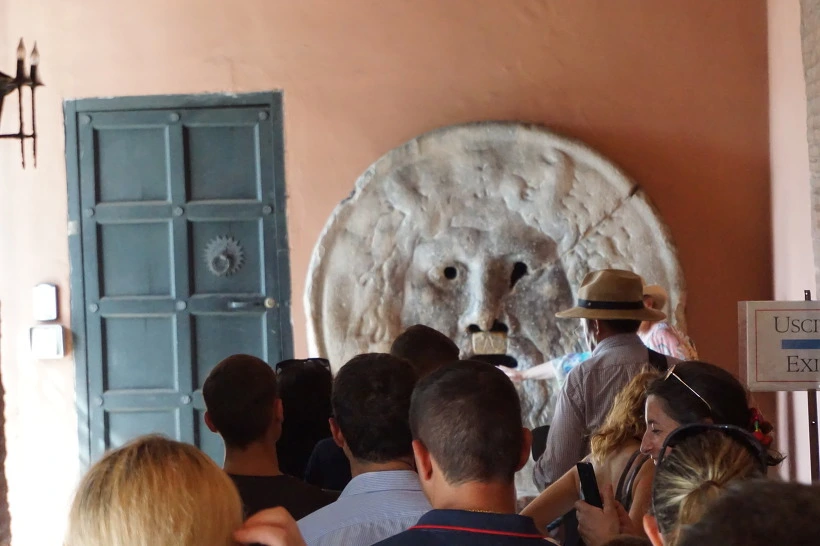 저 진실의 입에 손 넣고 사진 찍으려고 서있는 사람들