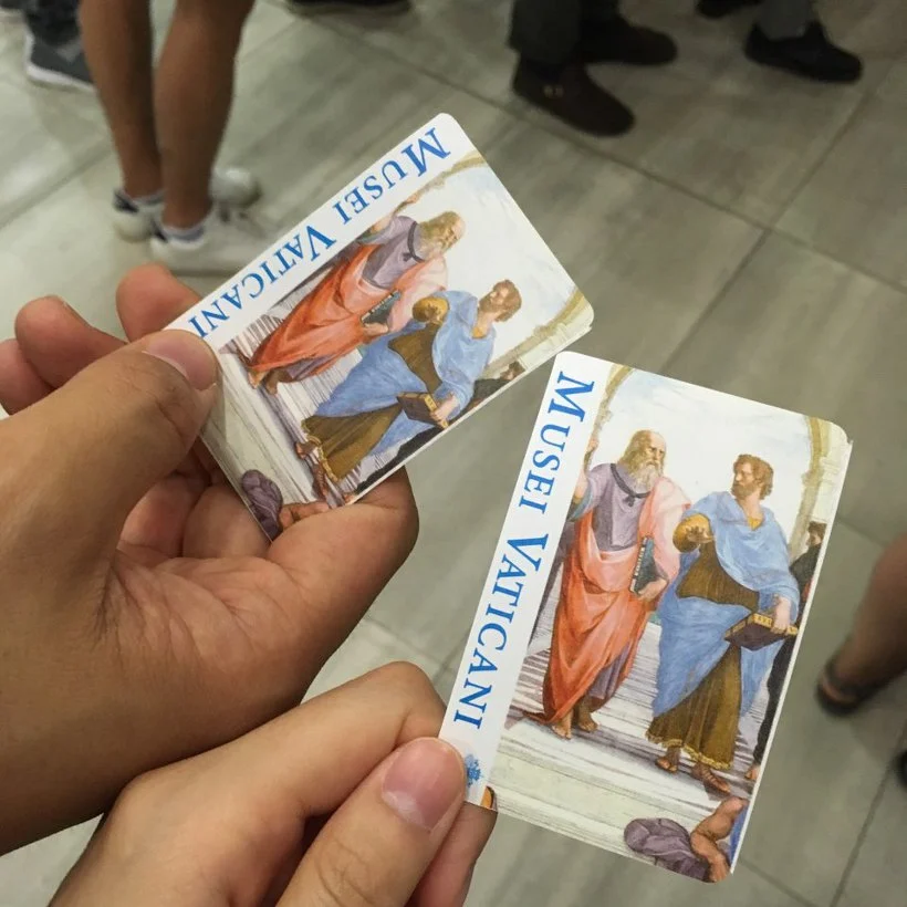 티켓팅을 하고 받은 입장권에는 아테네 학당 벽화의 플라톤과 아리스토텔레스 부분이 인쇄되어있다.