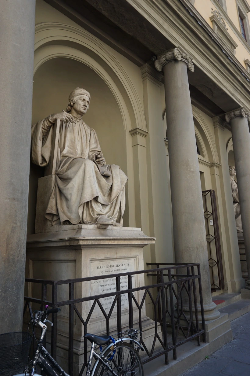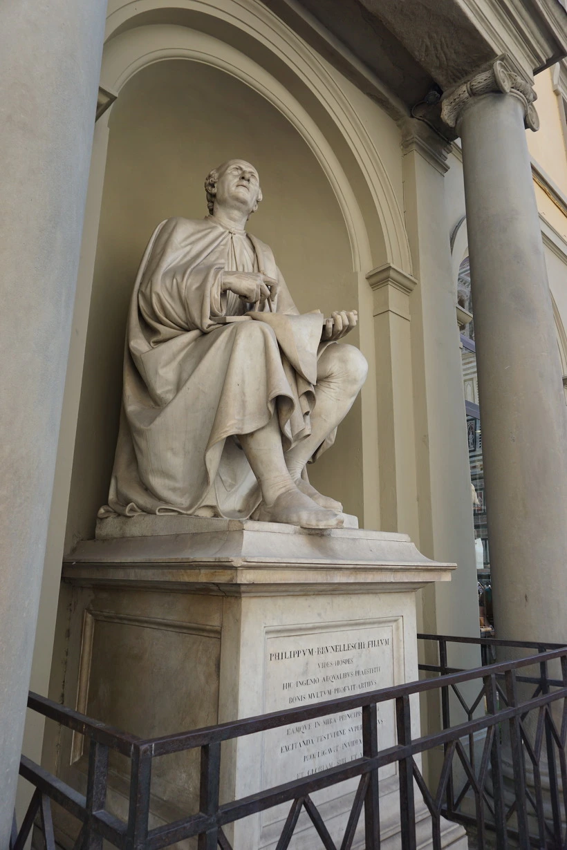 두오모 옆쪽으로 건물들을 잘 보면 돔을 쳐다보는 두 개의 상이 있는데 하나는 캄비오고 하나는 브루넬레스키다. 두 명 모두 자신이 만든 부분을 응시하고 있다.