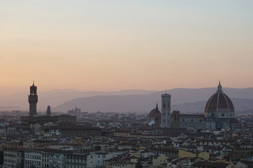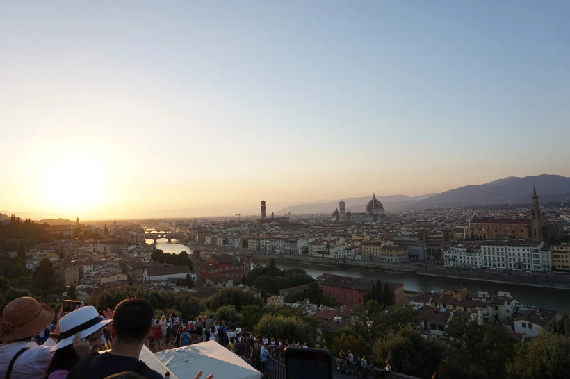 붉은색과 주황색, 보라색이 뒤섞인 하늘과 그 빛에 비친 피렌체를 보니 짧은 노을의 시간이 아까울 정도였다. 언덕에 있던 수많은 사람들도 다들 사진을 찍는다고 정신이 없었다. 모두들 같은 심정이었겠지만 넋을 놓고 바라보니 어느새 해는 금방 져버렸다.