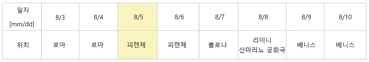피렌체에서의 일정을 설명하자면, 오전에 로마에서 오전 버스를 타고 피렌체로 이동했다.