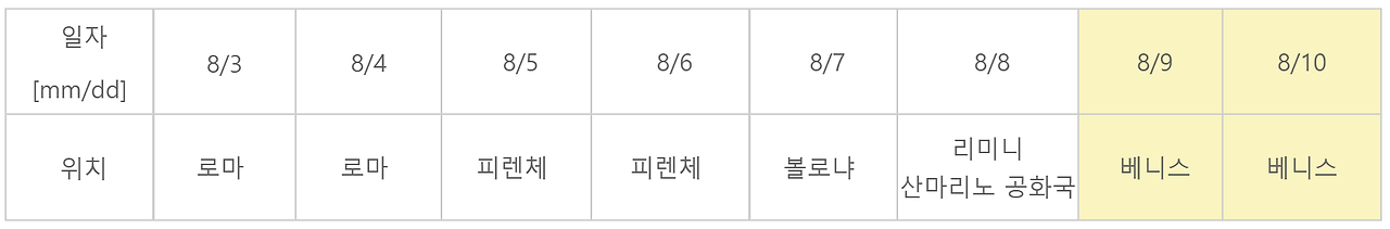 1. 로마 : 친구 장 씨와 함께 해서 즐거웠음, 하지만 미친 더위에 체력은 여행 시작 반나절만에 제로가 됨, 콜로세움 안에서 소매치기당할 뻔함.