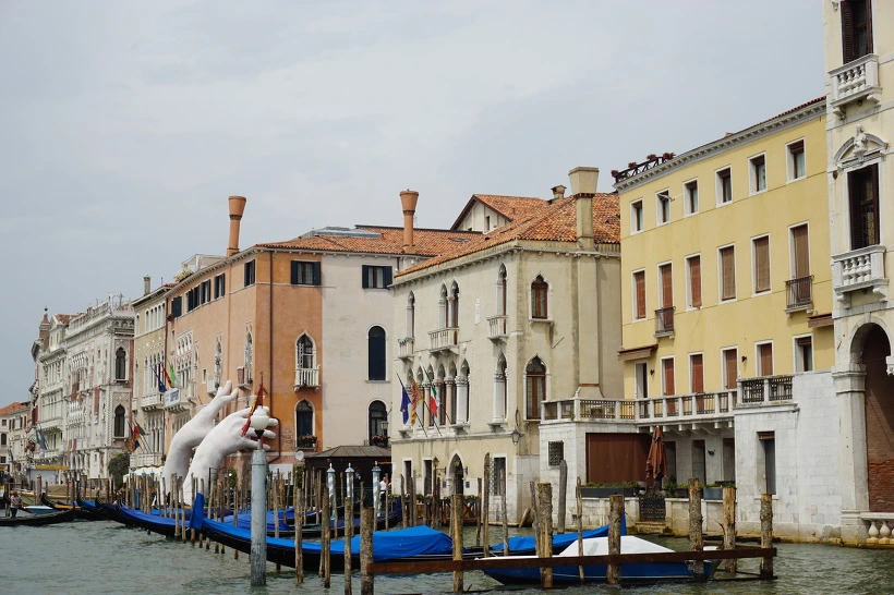 여행 갔을 시점에 베니스 비엔날레를 하던데 그 관련 건물인지 흰 손 두 개가 건물을 만지고 있었다.