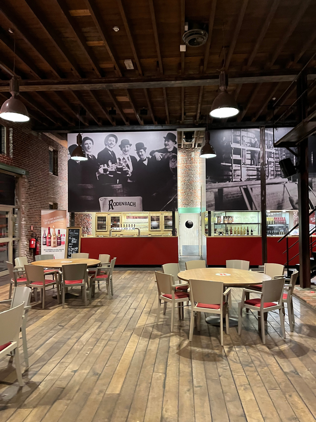 이렇게 양조장의 숙성실을 쭉 구경하며 다양한 이야기를 듣다 보면 어느새 마지막 홀이 나온다. 아래의 제일 왼쪽 사진에 있는 홀에서는 결혼식도 한다고 하니 이 양조장은 로에세라르에서 일반적인 양조장 이상의 역할을 하는구나 하는 생각이 들었다. 이 날은 손님이 우리밖에 없어서 우리가 불을 켜고 들어가서 불 끄고 나가는 상황이었지만 넓은 공간에 술을 마실 수 있는 공간도 잘 만들어져 있었다. 그리고 홀에서는 로덴바흐의 맥주들을 어떻게 만들었는지에 대한 설명을 들을 수 있었다.