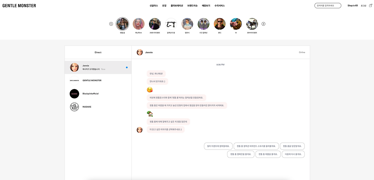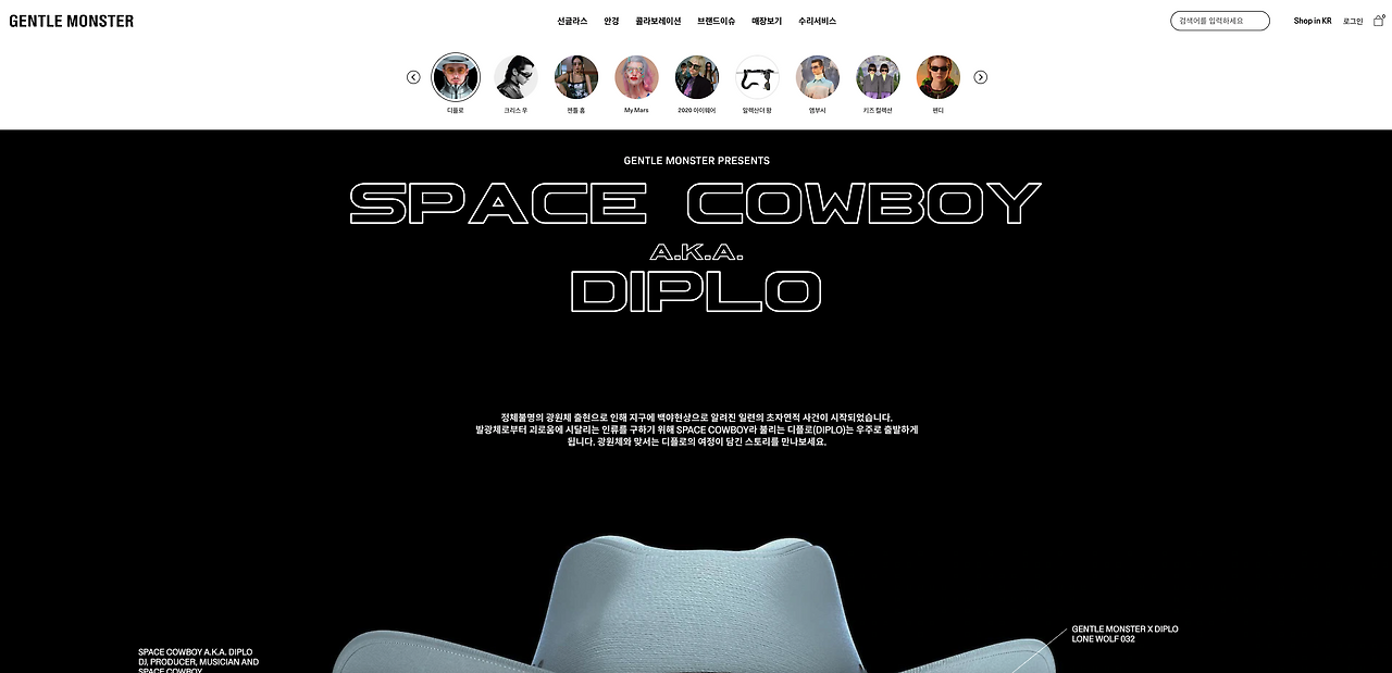 유니크한 플래그십 스토어로 유명한 젠틀 몬스터는 홈페이지도 예사롭지 않다.