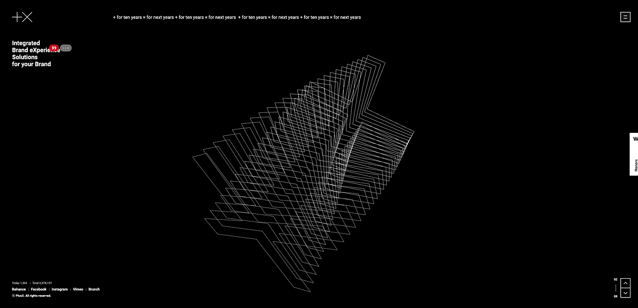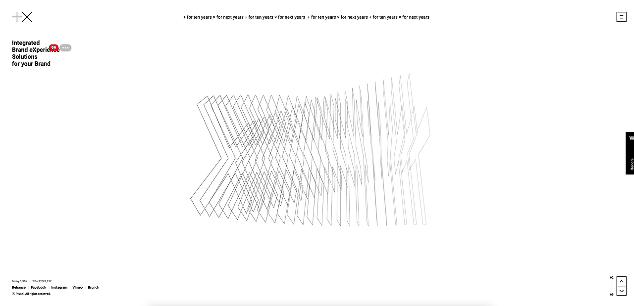 보통 디자인 에이전시 홈페이지라면 포트폴리오를 강조하고 기업에 대한 내용은 최대한 간소하게 전개하는 편인데 플러스엑스는 기업소개, 기업문화, 채용, 등등에 관한 내용도 너무나 잘 풀어냈다. 그래서 플러스엑스라는 회사가 더 매력적으로 느껴지게 하는 힘이 있는 것 같다.