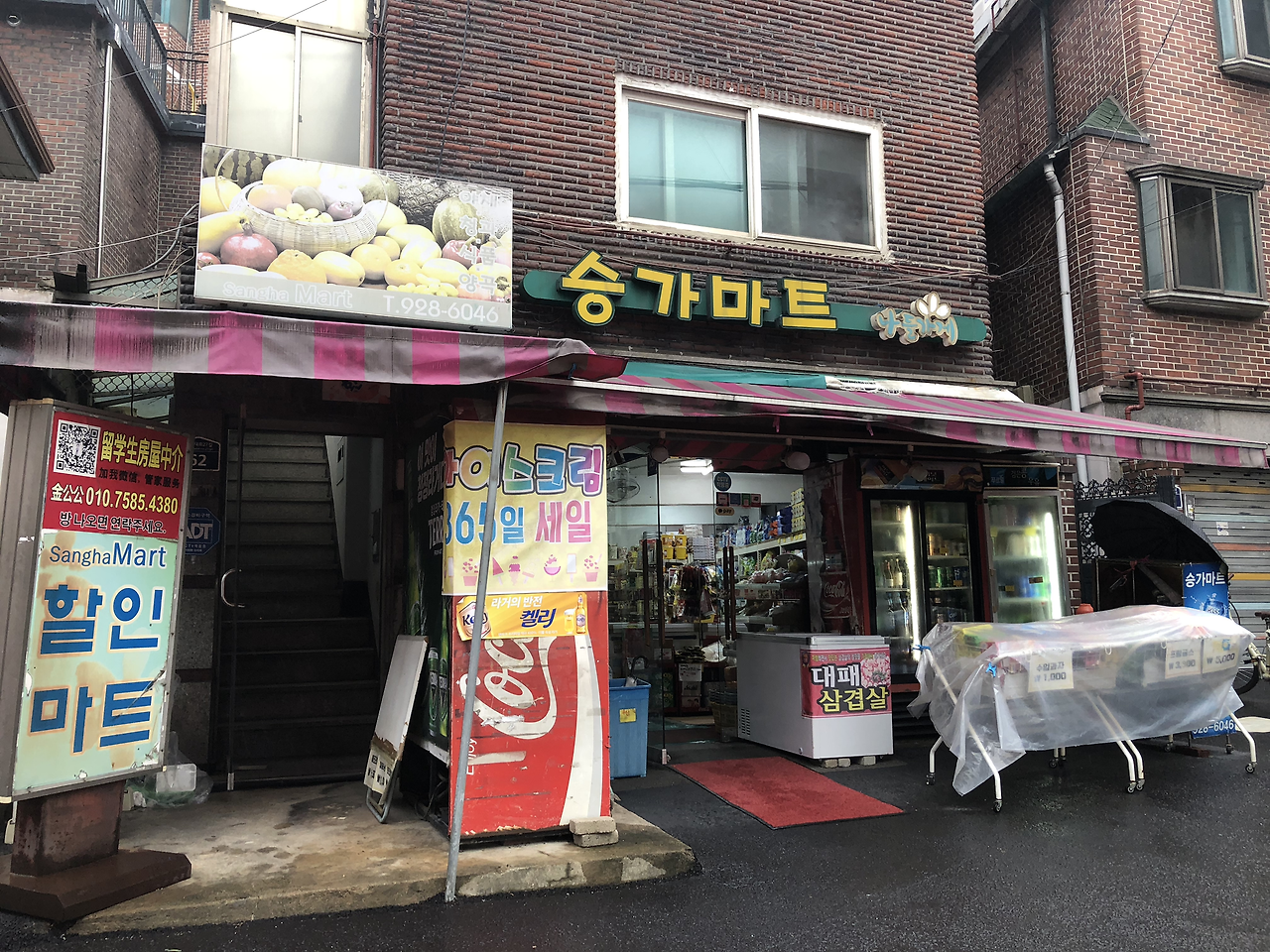 승가 마트를 지나 비가 부슬부슬 내리는