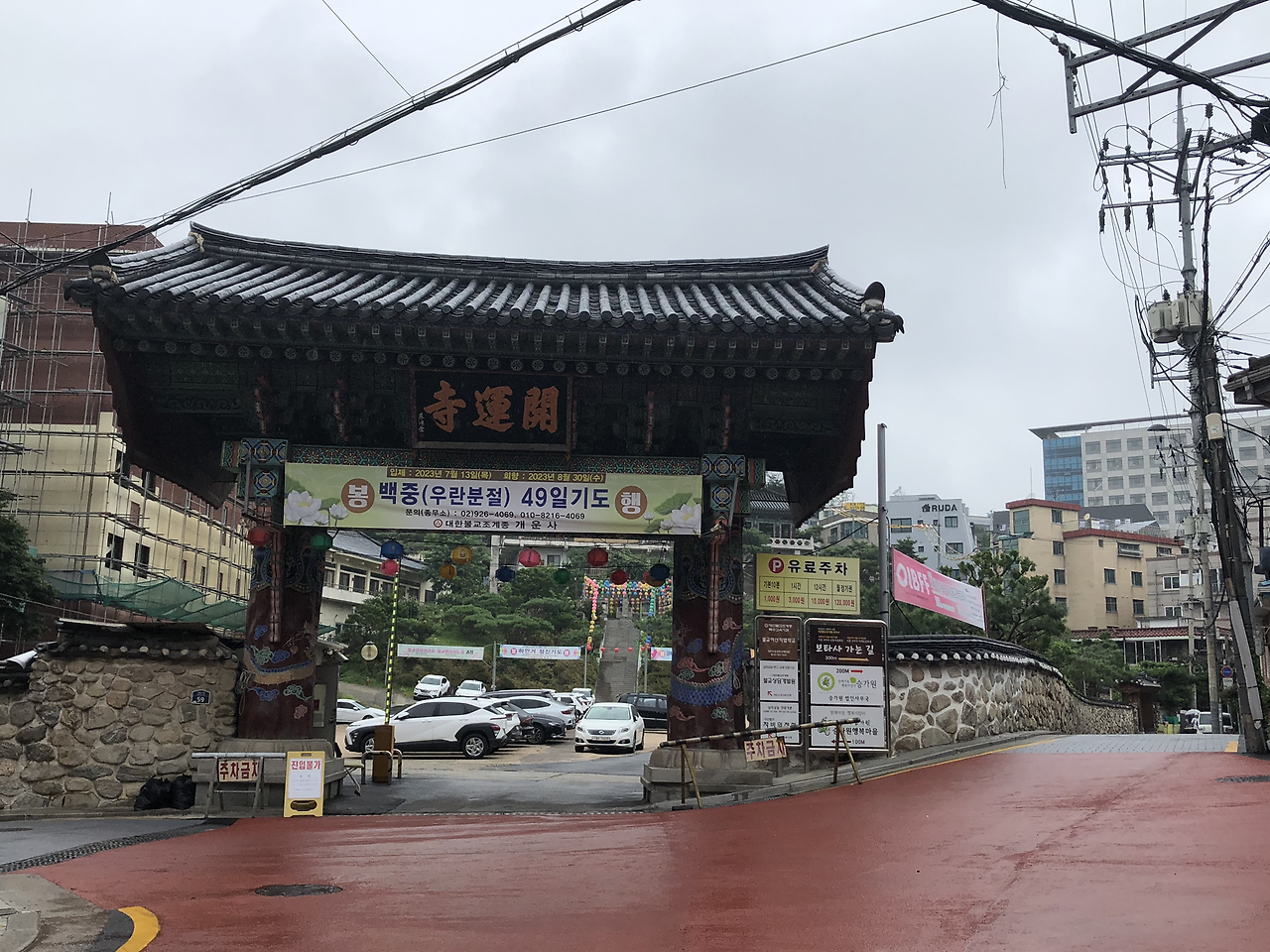 개운사를 지나 비 오는 길을 걸어갔다.