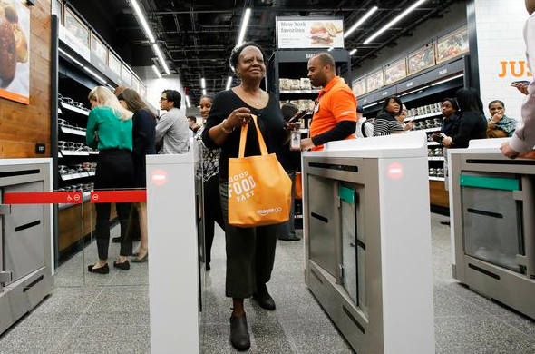 - '노 라인즈, 노 체크아웃(No Lines, No Checkout)'. 아마존고가 내세우고 있는 캐치프레이즈다. '저스트 워크 아웃' 기술이 적용된 아마존고는 매장 안에 점원도, 결제를 하기 위한 줄도, 결제 과정도 없다. 이용자는 그저 사고 싶은 물건을 장바구니에 담고 개찰구를 통과하면 된다.