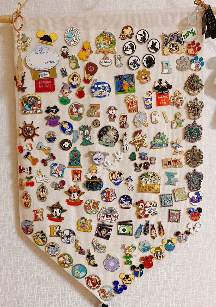 귀엽고 깜찍한 장난감들이 가득한 디즈니월드에서, 내 마음을 사로잡은 것은 조그맣고 반짝거리는 핀뱃지였다. 디즈니의 온갖 캐릭터부터 마녀의 신발, 공주의 머리띠 같은 자잘한 소품까지 핀뱃지로 나오지 않는 것이 없었다. 지금껏 몰랐던 핀 콜렉터의 세계는 정말 넓어서, 희귀한 디즈니 핀만을 수십 년간 모아 온 사람도 있었고 전 세계 사람들에게 주문을 받아 핀을 대리구매하는 판매업자도 있었다. 광적인 콜렉터들을 위해 은밀하게 발매되는 특별한 핀들도 있었으니, 그런 핀들은 매장 진열도 하지 않고 직원에게 따로 문의하는 손님에게만 슬쩍 꺼내다 주는 식으로 판매됐다.