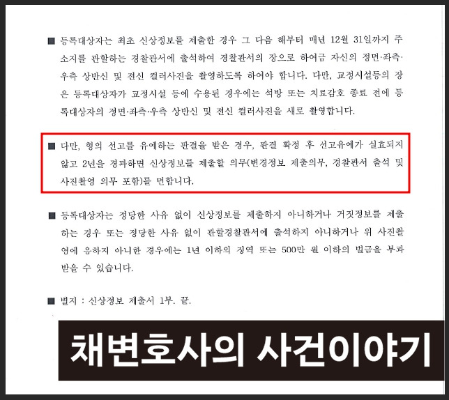 신상정보등록대상 범죄 선고유예 받은 경우라 하더라도 형이 확정된 때로부터 30일 이내에 관할 경찰서에 신상정보를 등록해야 한다는 점을 절대로 잊어서는 안 되겠습니다.