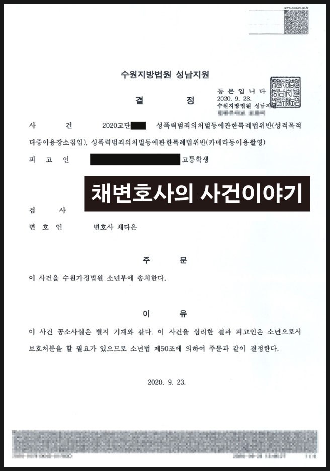 저희 사무실에서는 이러한 청구를 하여 1주만에 소년부 송치 결정을 받았지요.