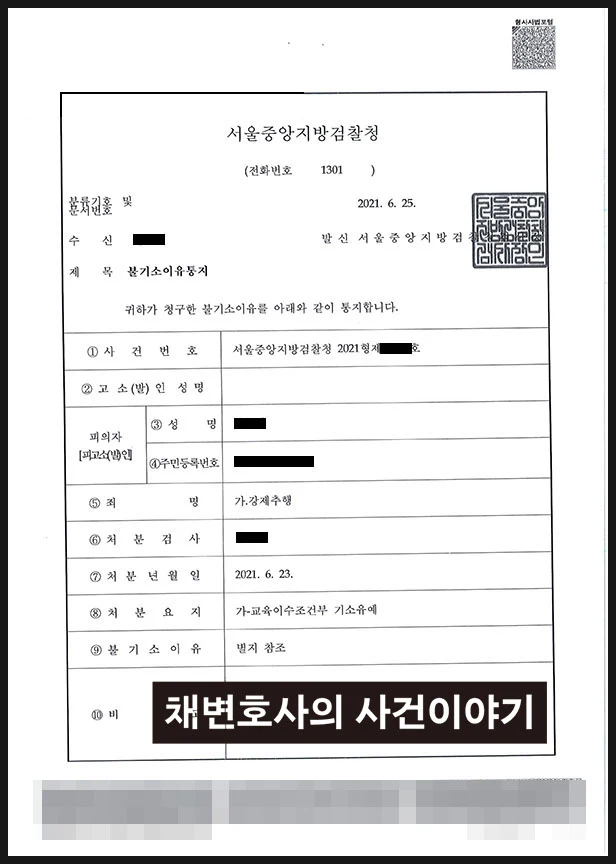 그래서 피해 신고를 한 2명 모두에 대해 합의를 하였고, 이러한 사실에 대해 또 바로 변호인 의견서를 제출하여 검찰 단계에서 신속히 합의가 이루어졌습니다.