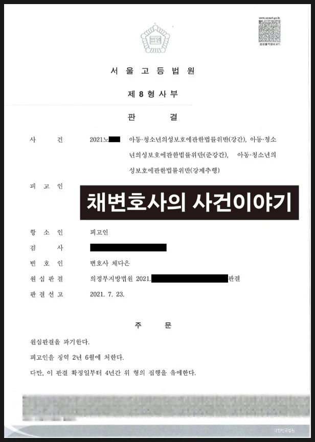 이 사건은 1심에서 단기 2년 6개월, 장기 4년의 실형에서 합의 덕분에