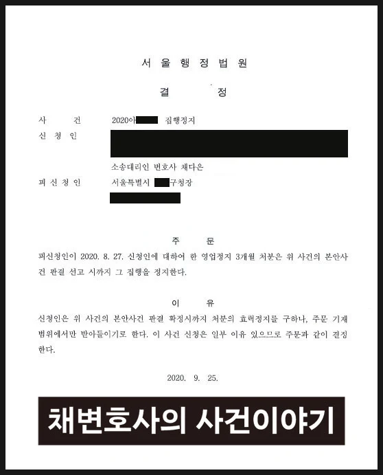 모텔을 운영하는 A는 ○○구청으로부터 영업정지 3개월 처분을 받았습니다. 그러자 A는 3개월