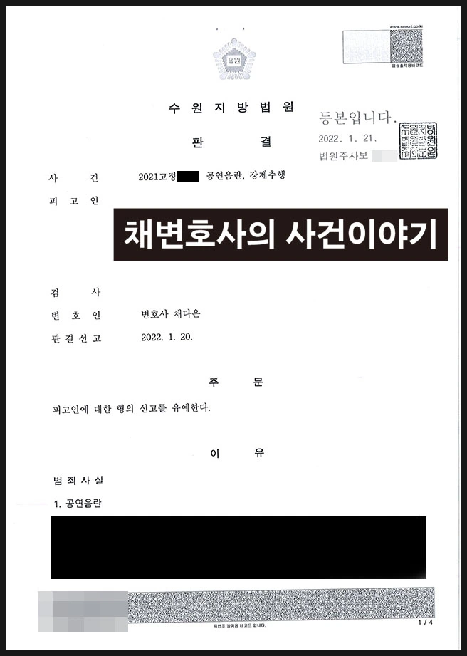 의뢰인은 공연음란 및 강제추행 혐의로 약식명령 벌금 1,000만 원을 선고받고 정식재판을 청구하였습니다. 이미 수사단계에서 합의까지 모두 완료한 상황이었기 때문에 재판단계에서 드라마틱한 무언가를