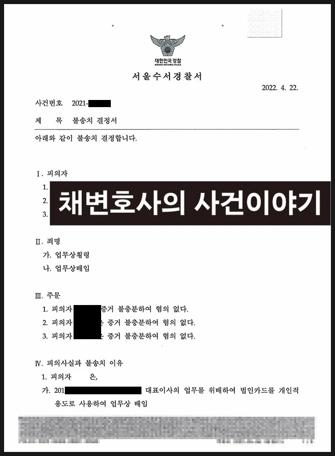의뢰인은 법인카드를 개인적으로 유용하였다는 등의 이유로 업무상배임, 업무상횡령으로 고소를 당했