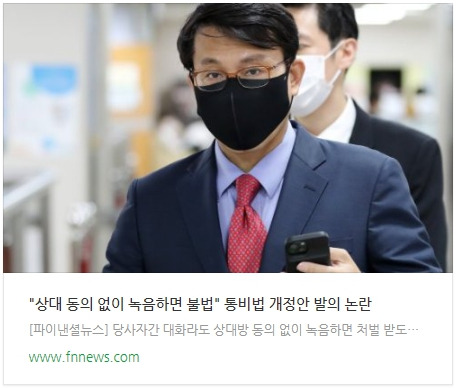 [파이낸셜뉴스] 당사자간 대화라도 상대방 동의 없이 녹음하면 처벌 받도록 하는 법안이 발의돼 논란이 예상된다. 현행법은 당사자가 대화에 참여하지 않을 경우 녹음하면 불법이다. 대화에 참