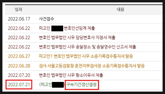 왜냐하면 2022. 7. 25. 구속기한 만료이니까 그 즈음하여 미리 결정을 한 것이지요.
