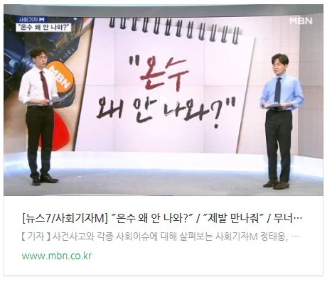 【 기자 】 사건사고와 각종 사회이슈에 대해 살펴보는 사회기자M 정태웅, 한범수입니다. 1. ″온수 왜 ...