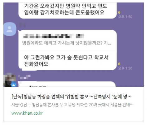 서울 강남구 청담동에 본사를 두고 유명 백화점 20여 곳에서 제품을 판매하는 해외 천연화장품 ...