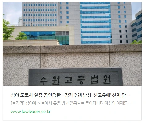 1심인 수원지방법원 형사9단독 박민 판사는 2022년 1월 공연음란, 강제추행 혐의로 기소된 A씨에 대해 "개전의 정상이 현저하다고 판단되므로, 이번에 한해 특별히 (벌금 1000만원) 형의 선고를 유예한다"고 판결했다.