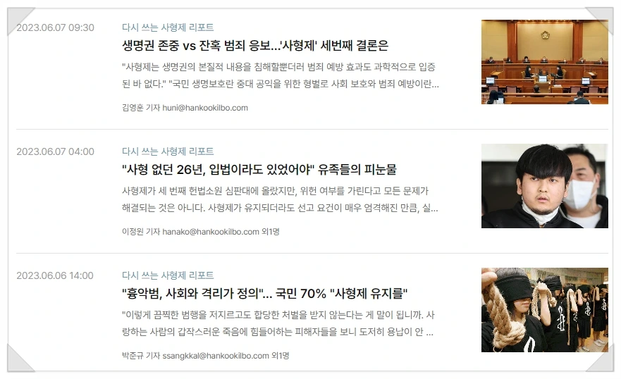 사형제도에 관심이 있는 분들은 꼭 읽어볼만한 기사라고 생각되어 공유합니다.