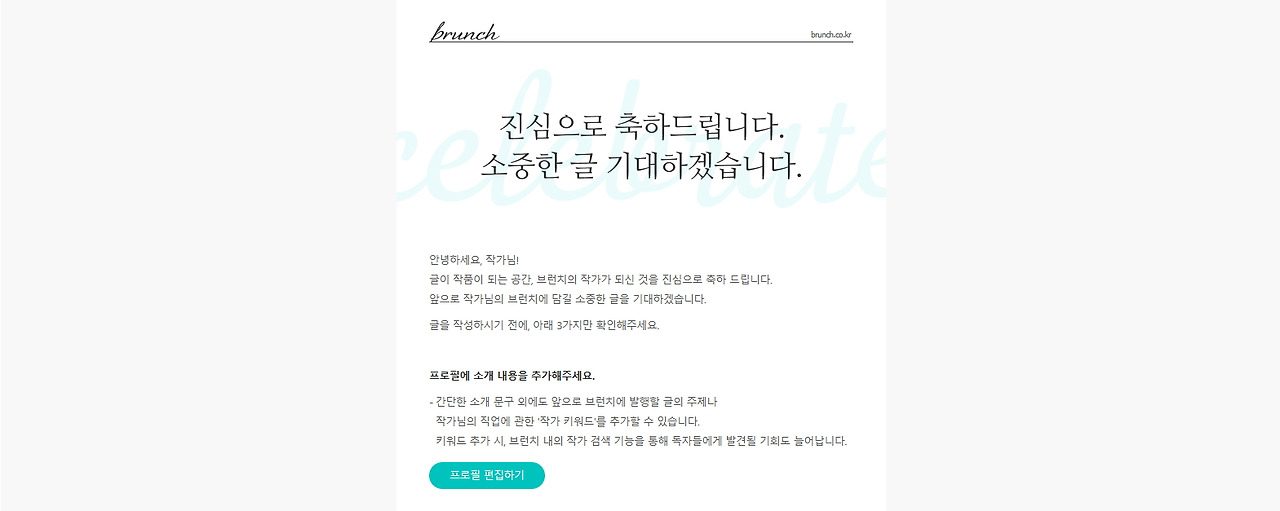 “브런치 작가가 되신 것을 진심으로 축하 드립니다.”
